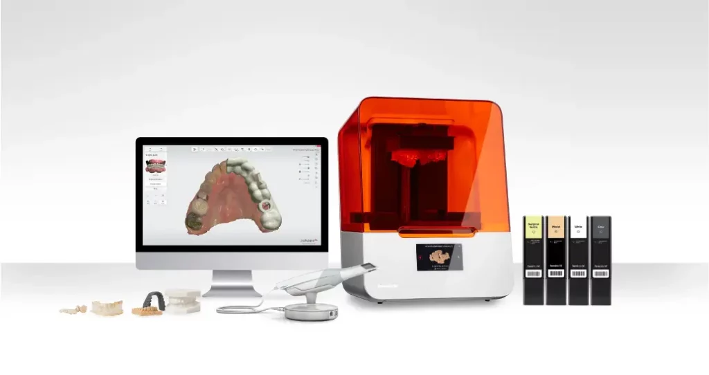 Una impresora 3D dental utiliza un software de diseño dental para convertir modelos digitales en instrucciones que la impresora puede seguir. La impresora deposita capas sucesivas de material dental, generalmente resina o cerámica, para construir la prótesis dental en 3D.